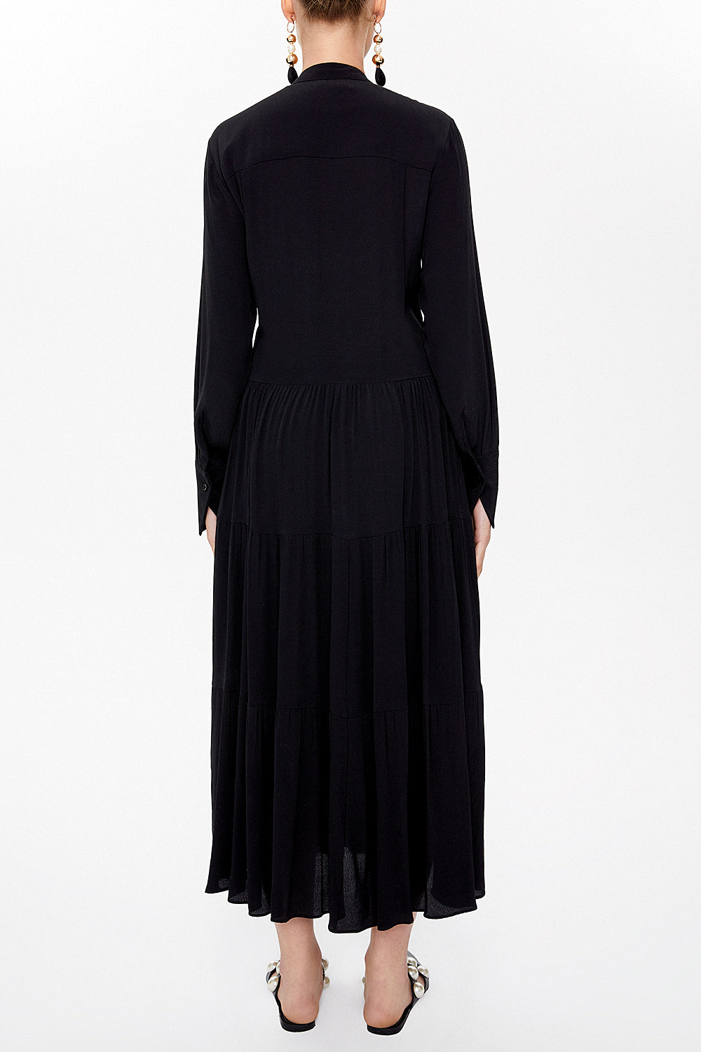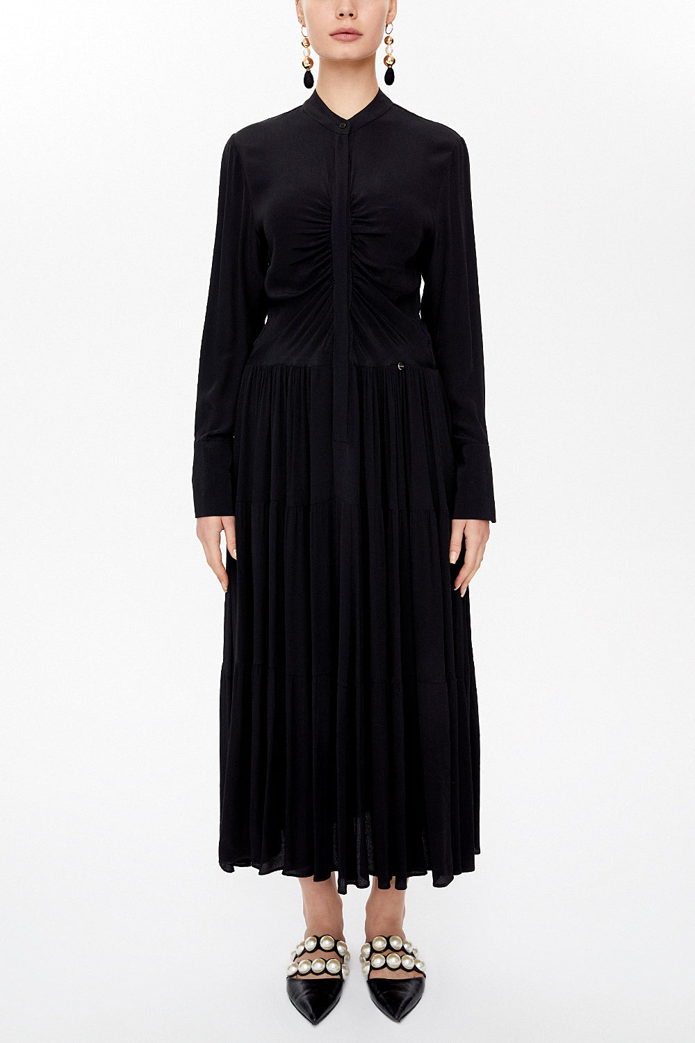 Siyah Önü büzgülü midi elbise 93010