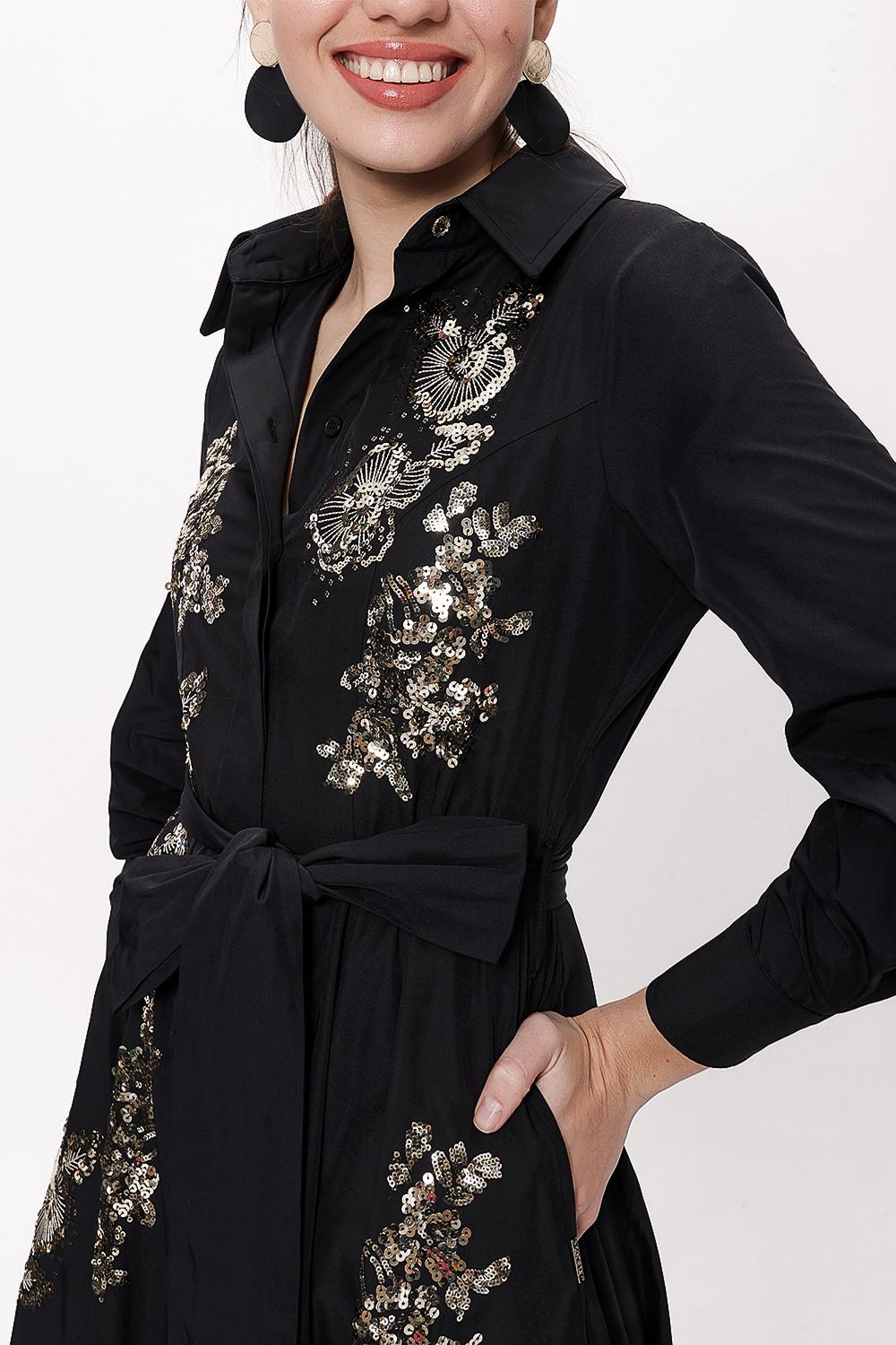 Siyah Payet nakışlı uzun tafta gömlek elbise 94334