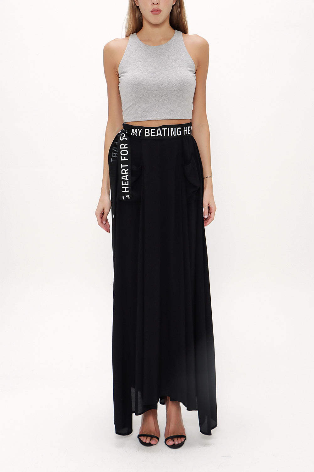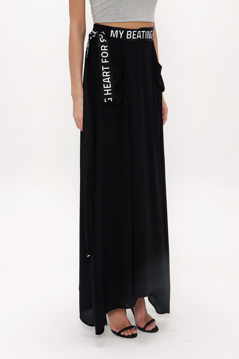 Siyah Pili detaylı ve kemerli uzun etek 81100
