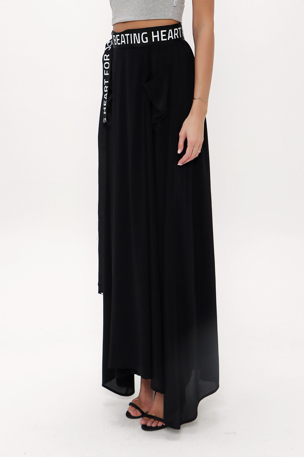 Siyah Pili detaylı ve kemerli uzun etek 81100