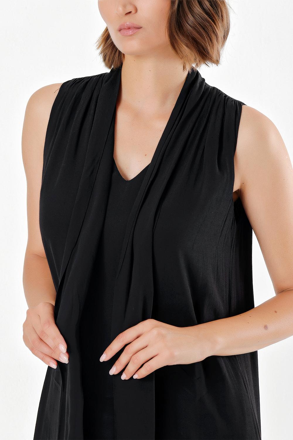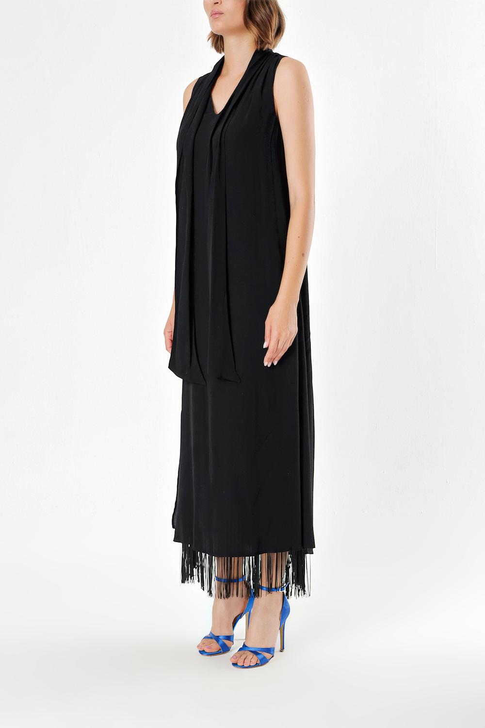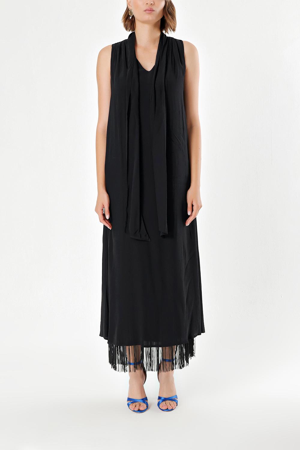 Siyah Püsküllü yırtmaçlı uzun elbise 92698