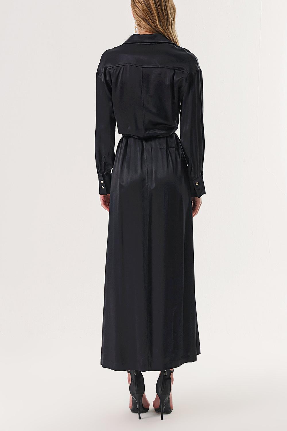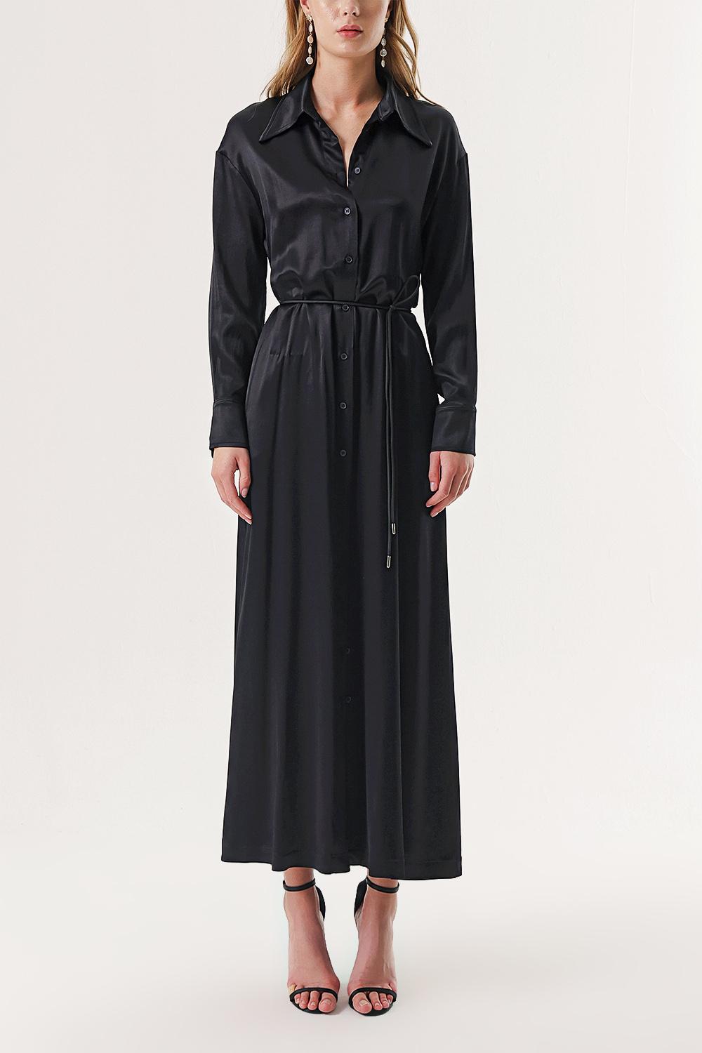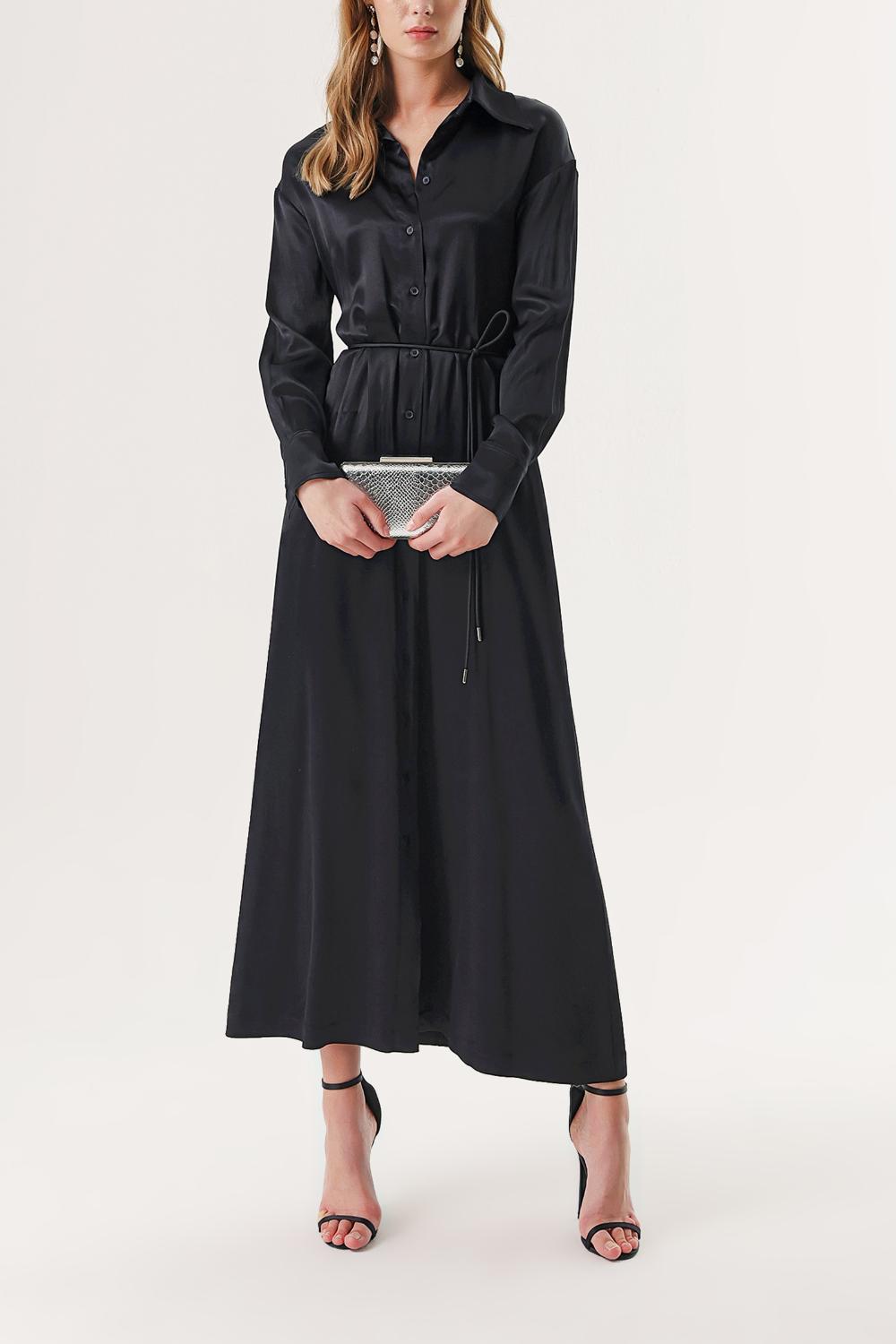 Siyah Sırtı bluzan detaylı bele oturan gömlek elbise 94178