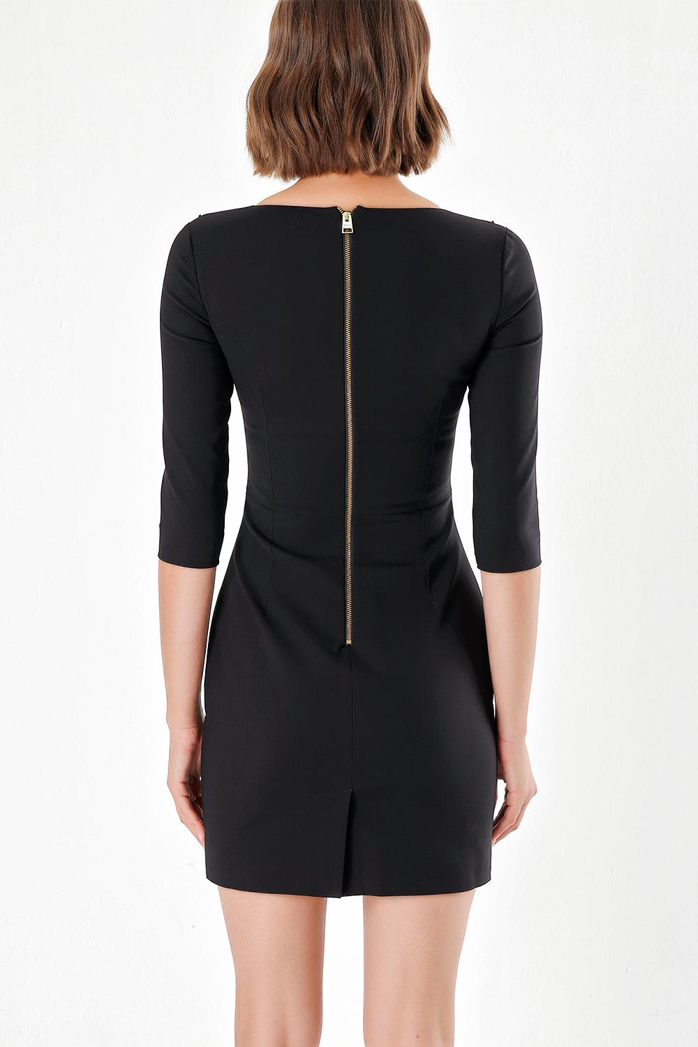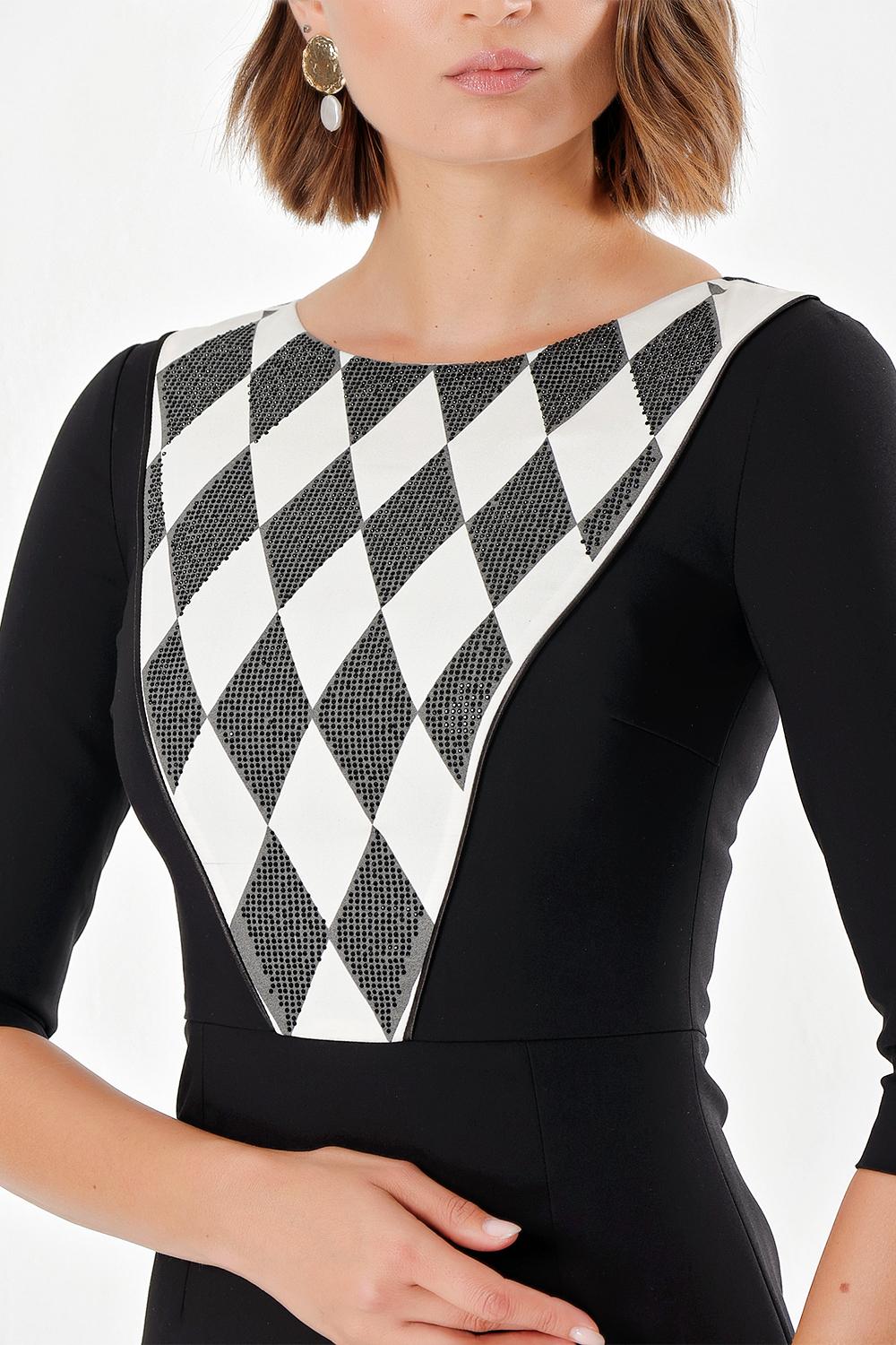 Siyah TAŞ DESEN DAR KESİM ELBİSE 91109