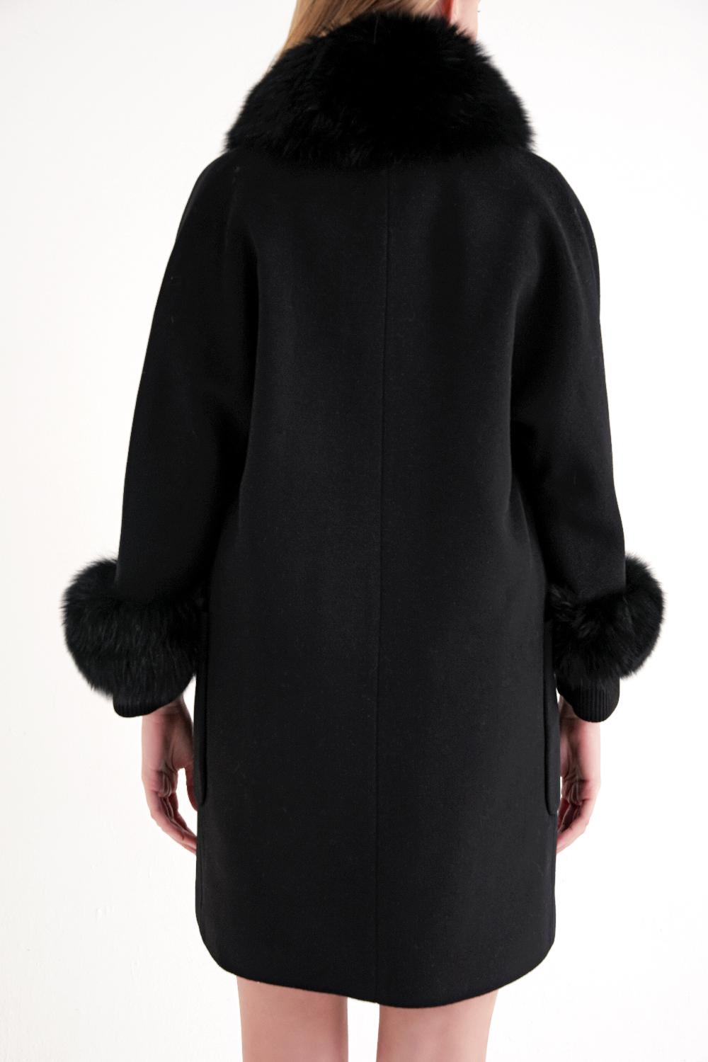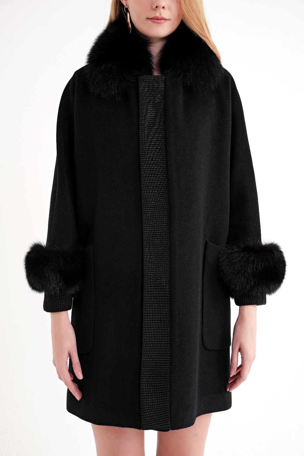 Ürün Özellikleri: Yumuşak dokulu kumaşıyla sıcak ve konforlu bir kullanım sunan bu kaban, yaka ve kol uçlarındaki kürk detaylarıyla zarif bir görünüm sağlar. Sade kesimi ve cep detaylarıyla şıklığı tamamlar.