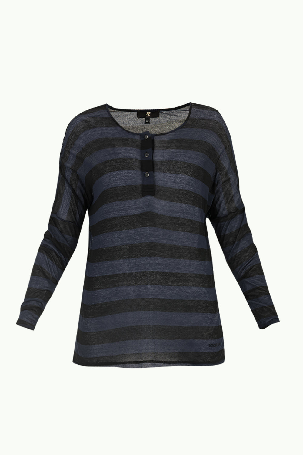 Siyah Yakası düğmeli bol kesim örme bluz 19269