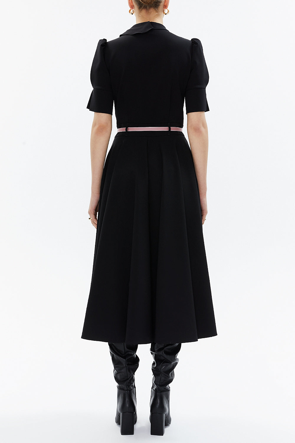Siyah Yakası fırfırlı kısa kollu elbise 93291