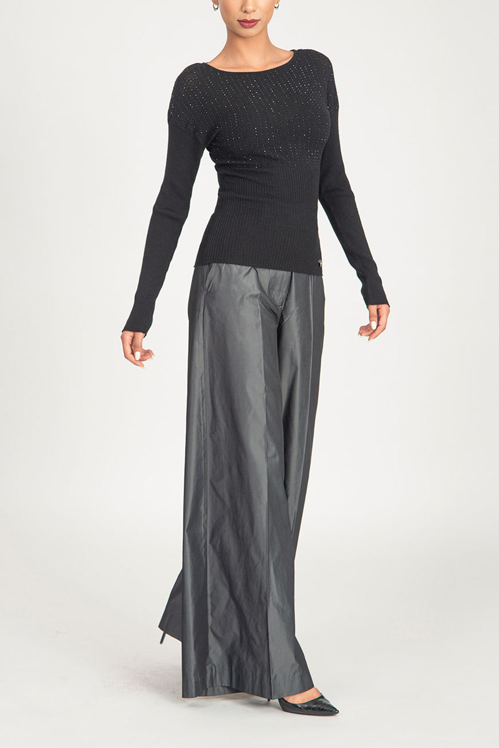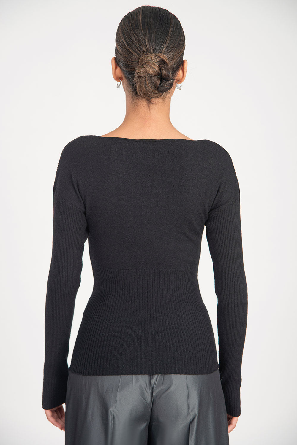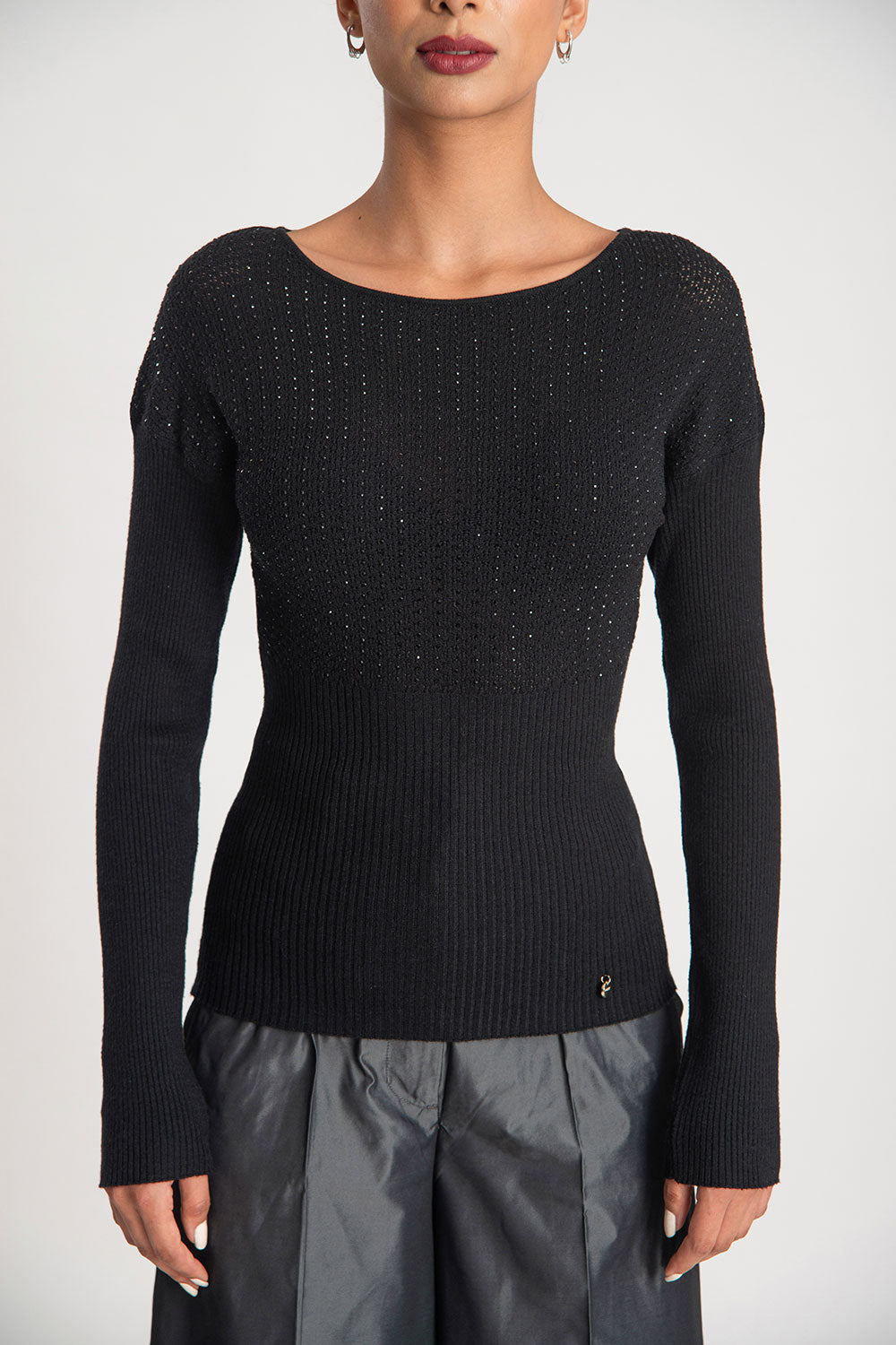 Siyah Yapıştırma taş detaylı triko bluz 28887