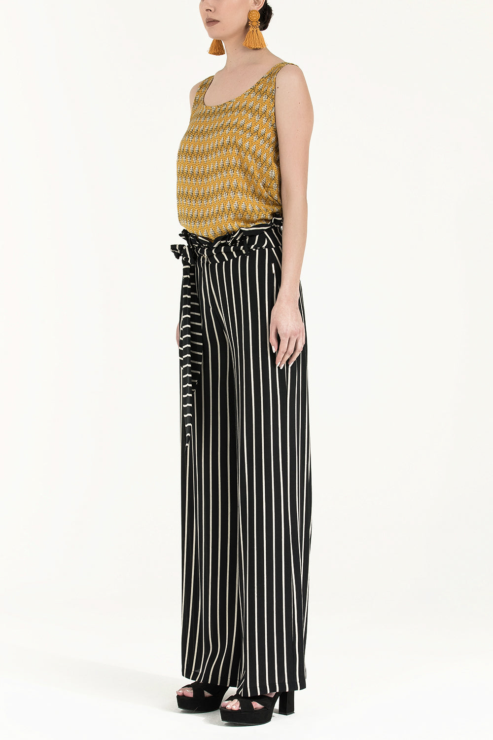 Siyah Yüksek bel bol kesim pantolon 41302