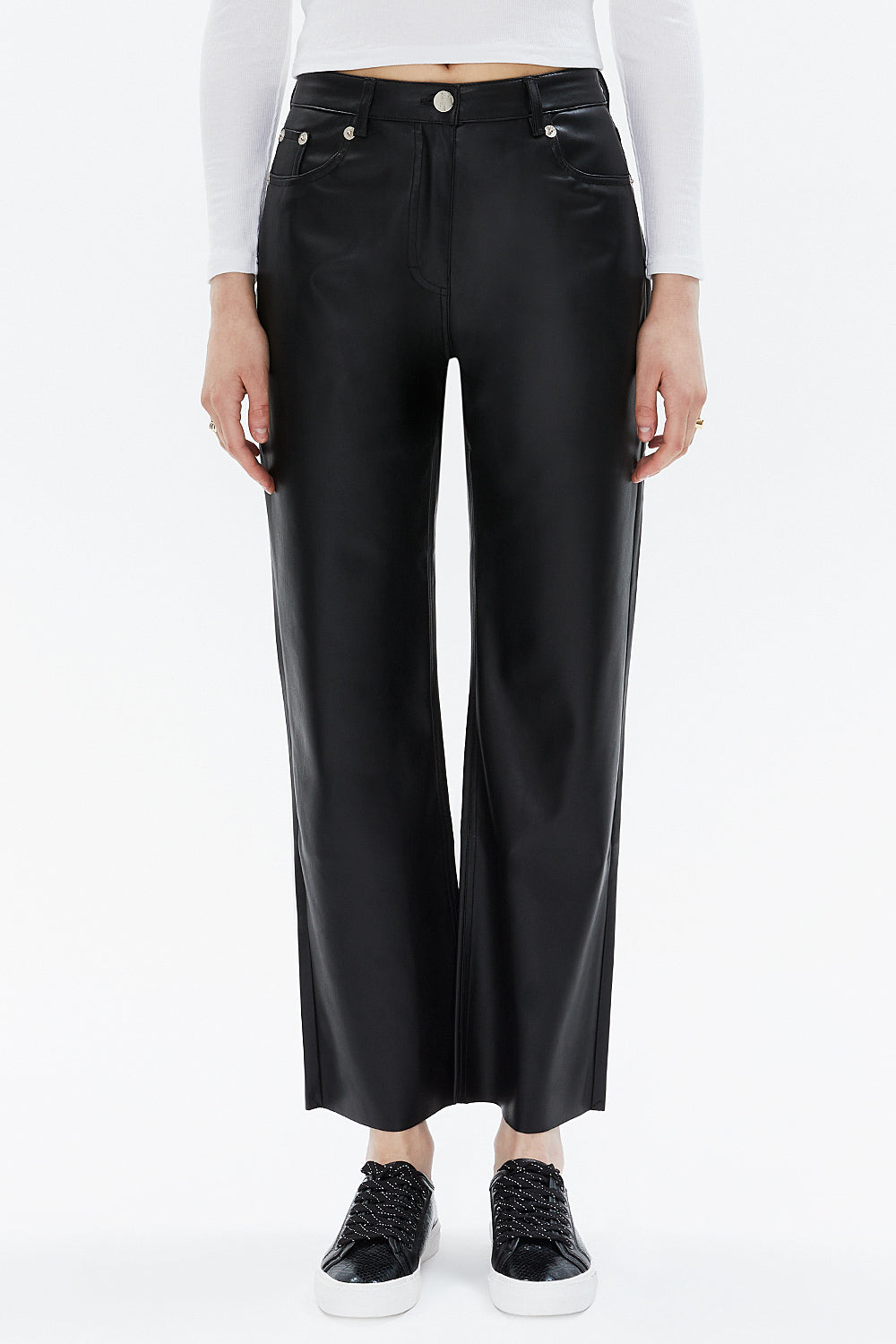 Siyah Yüksek bel bol paça deri pantolon 41512