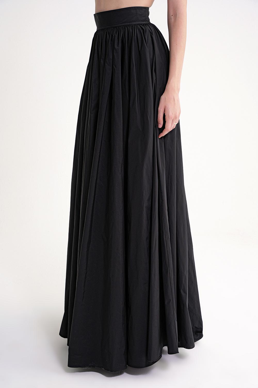 Siyah Yüksek bel büzgülü uzun etek 81317