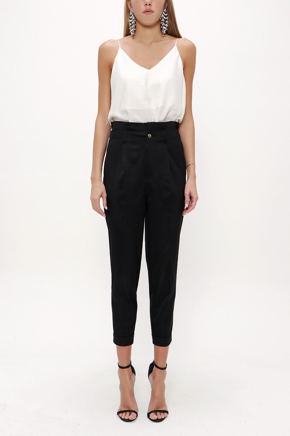 Siyah Yüksek bel pileli pantolon 41370