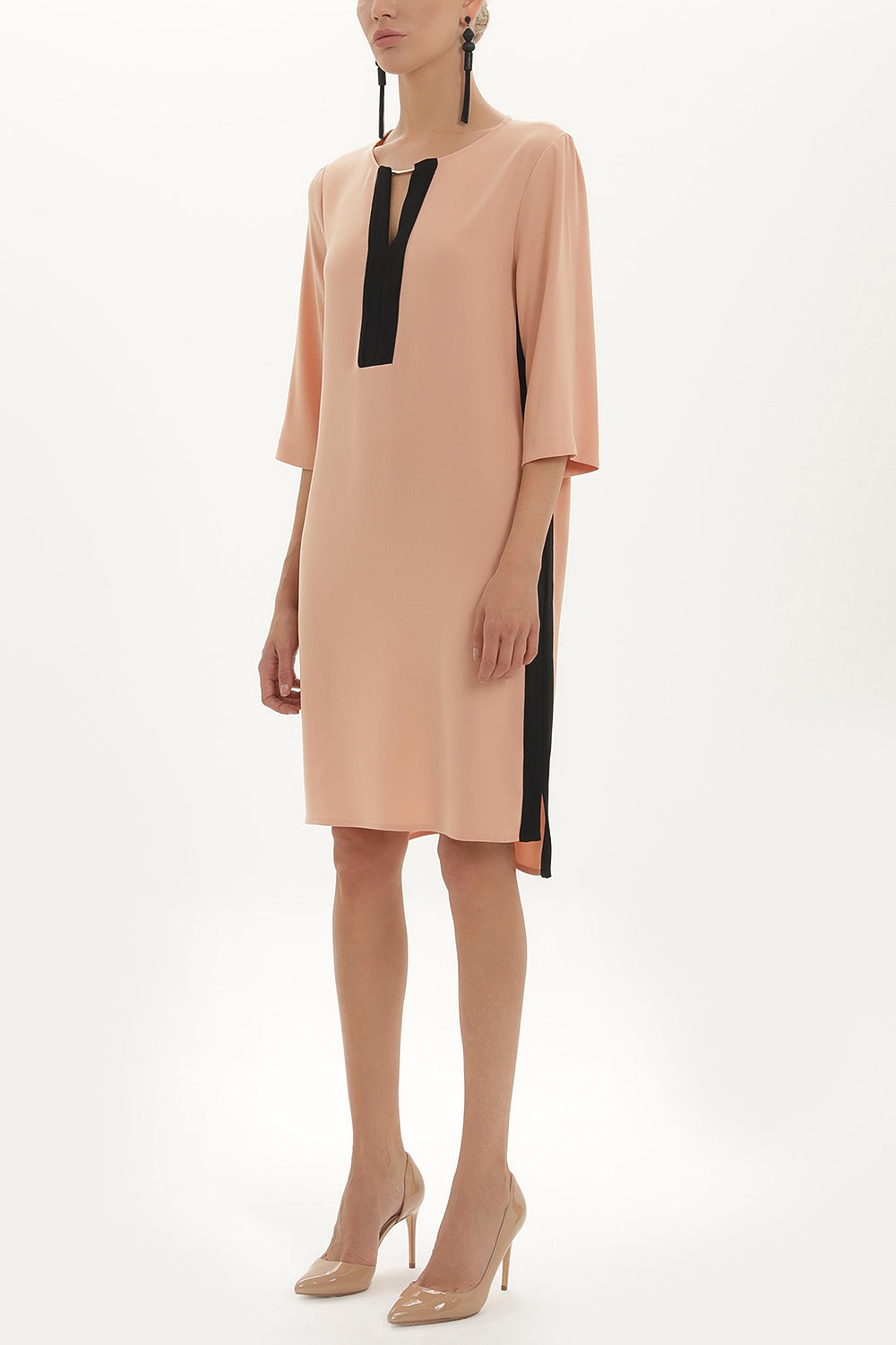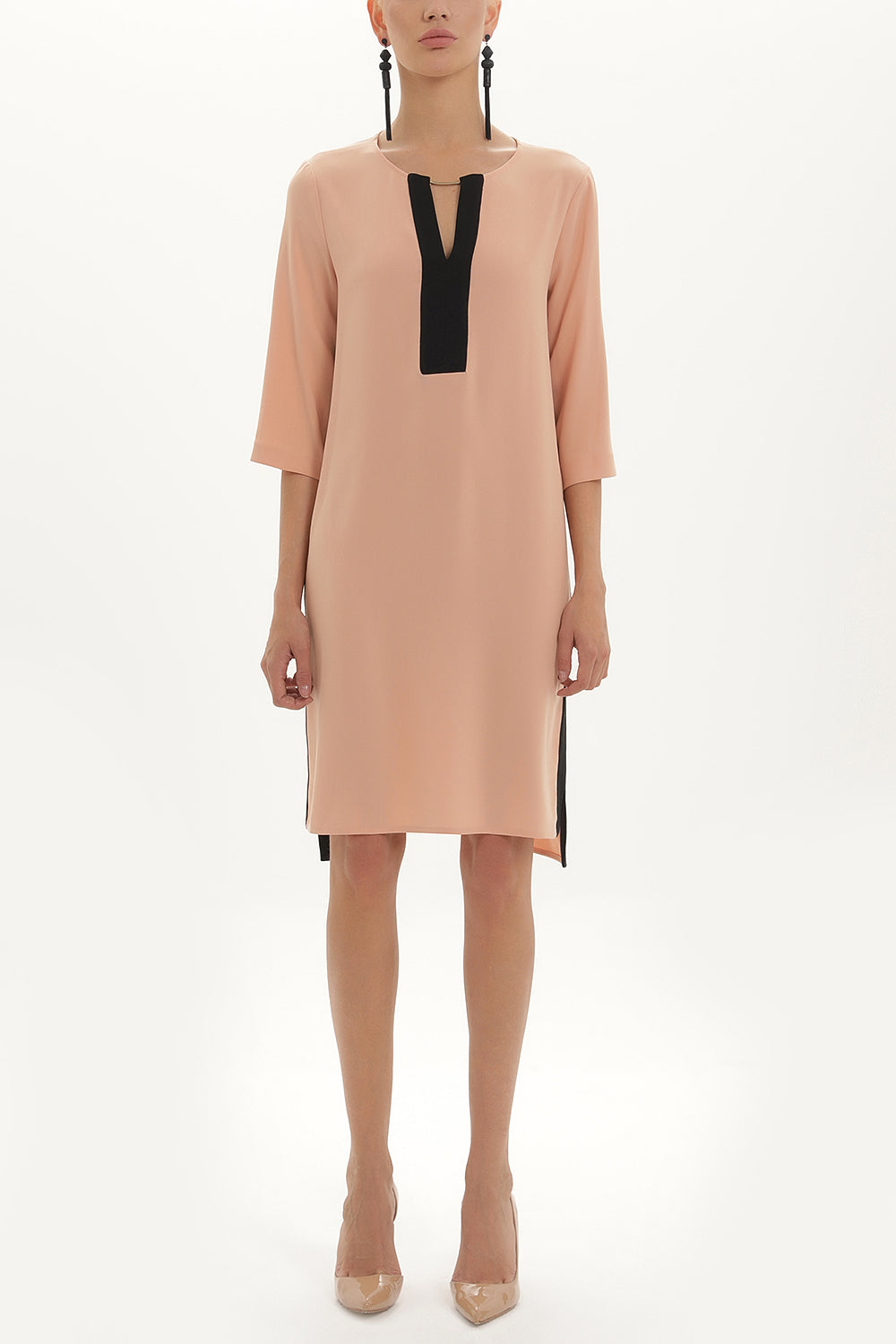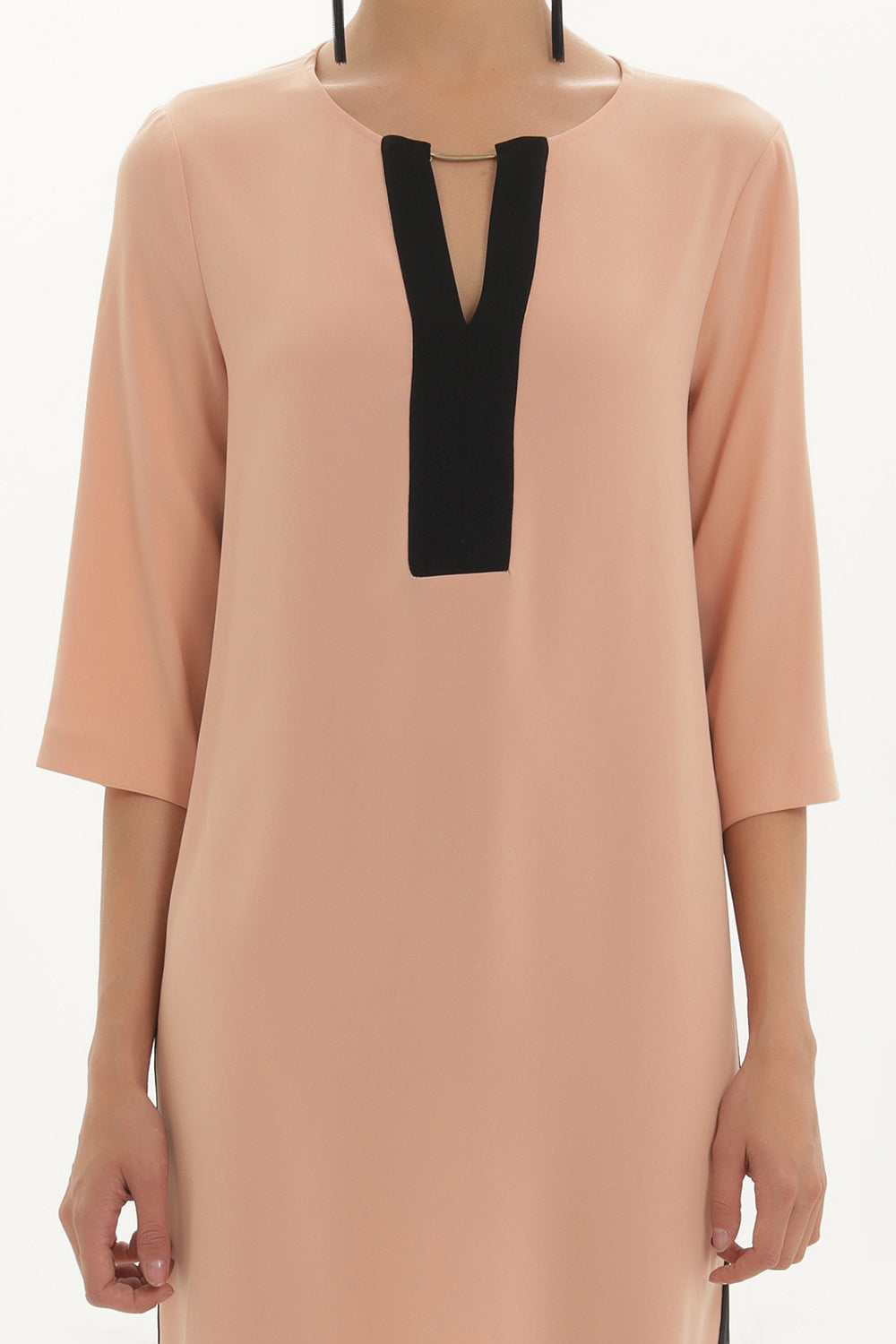 Somon Yakası aksesuarlı bol kesim midi elbise 91428