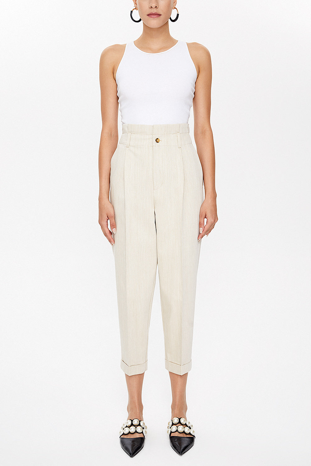 Sütlü Kahve Yüksek bel pileli pantolon 41370