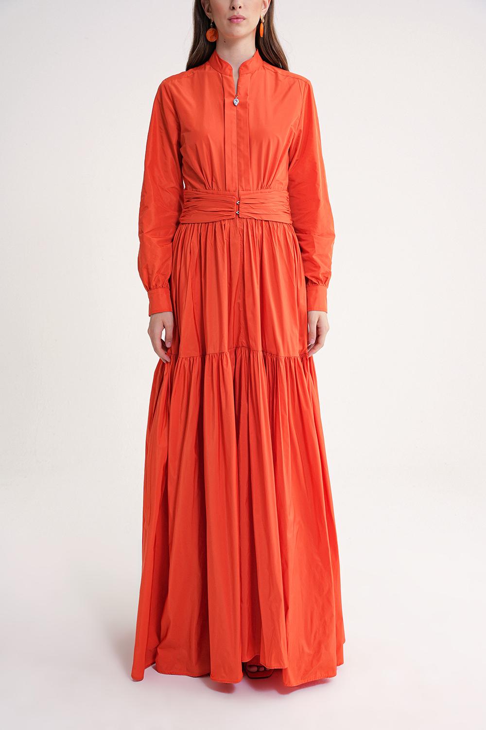 Tarçın Kemer detaylı büzgülü uzun gömlek elbise 94613