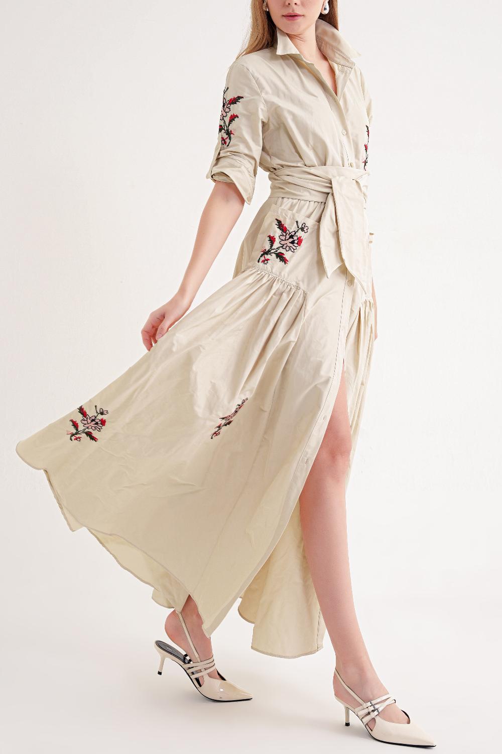 Taş Nakışlı uzun tafta elbise 94643 RPT