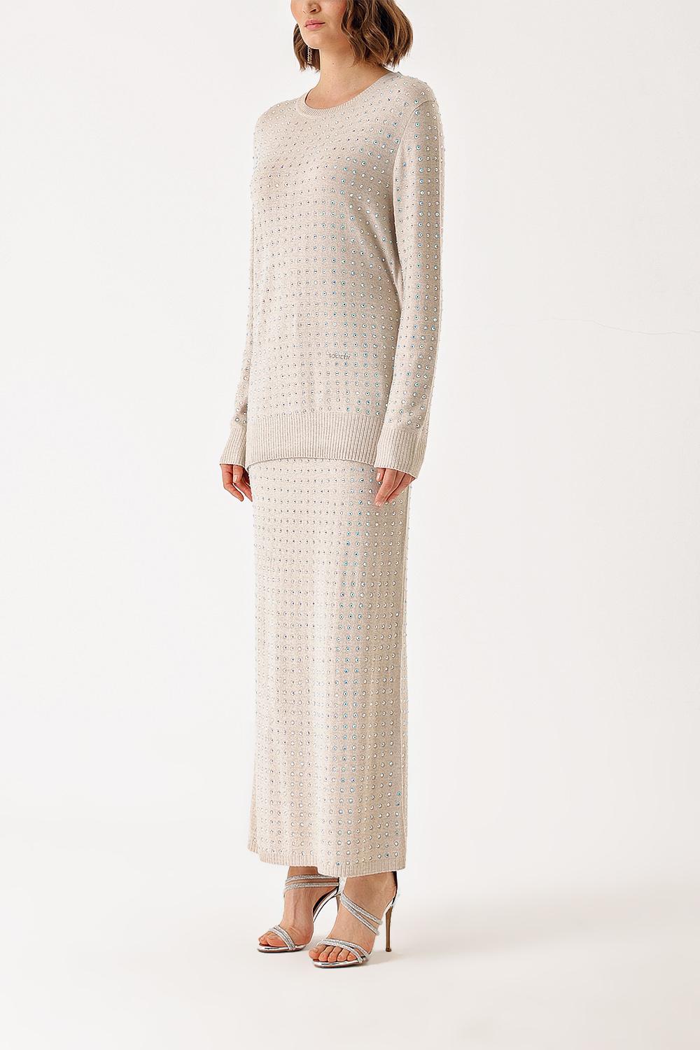 Taş Yün ve kaşmir karışımlı etek bluz triko takım 28884