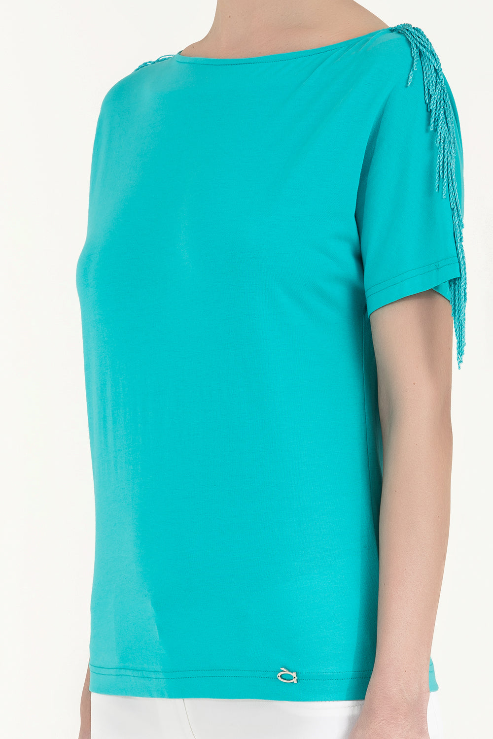 Turkuaz Omuzları püsküllü örme bluz 19324