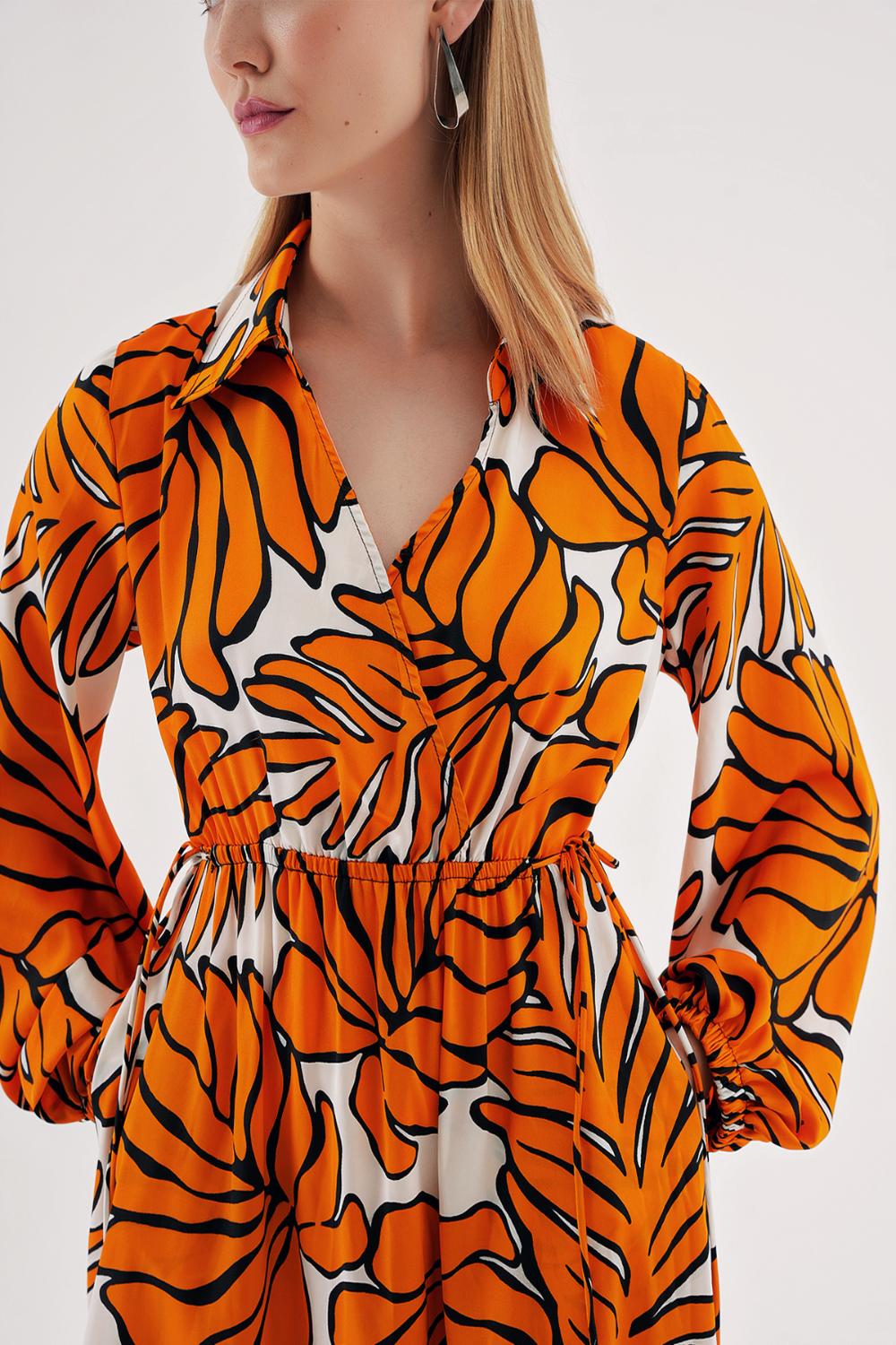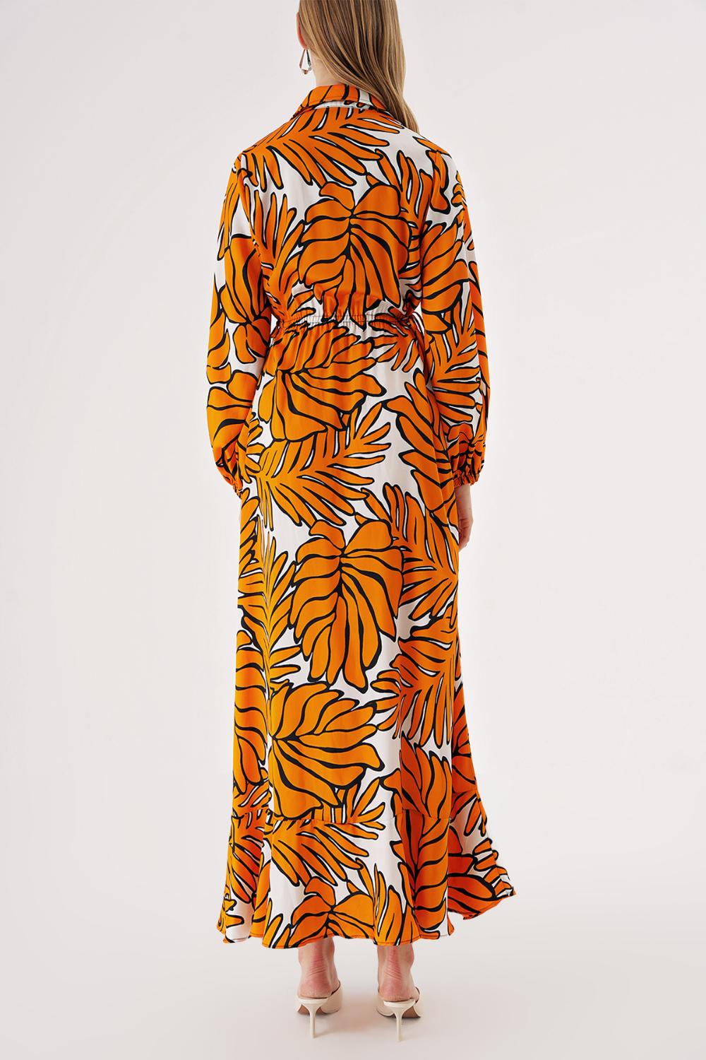 Turuncu Anvelop kapama gömlek yaka uzun elbise 94485