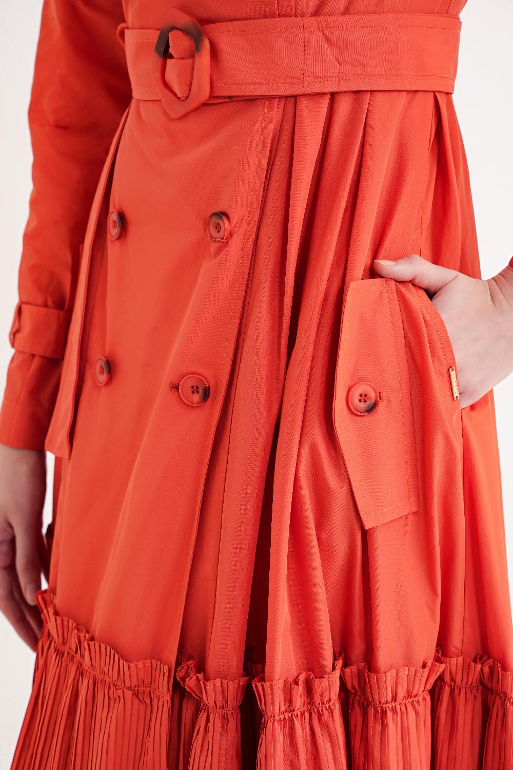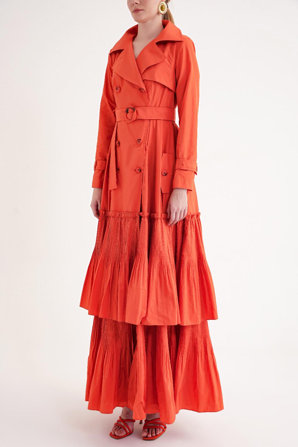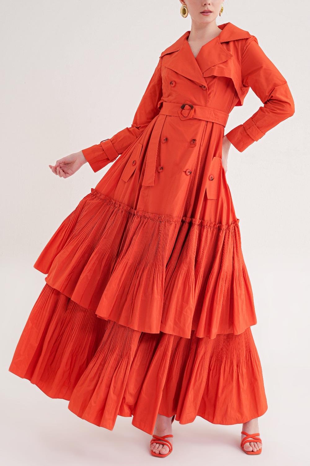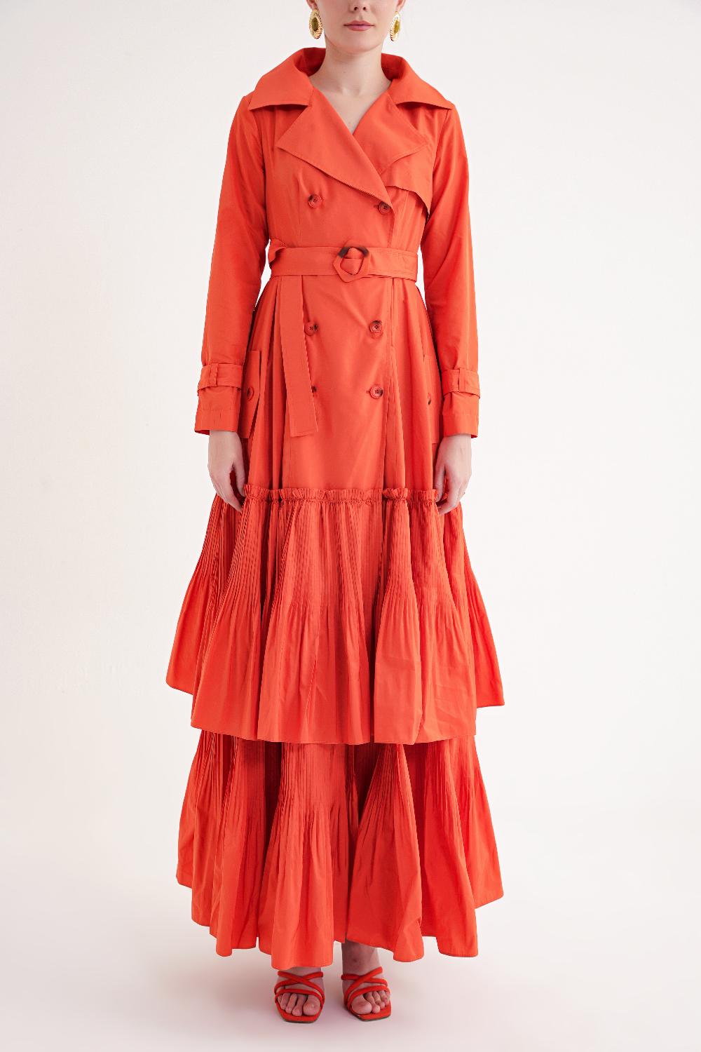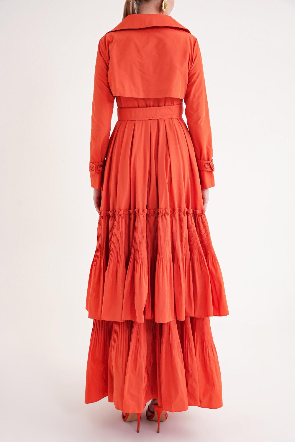 Ürün Özellikleri: Belden kemerli tasarımı ve katmanlı eteğiyle hareketli bir siluet sunan bu elbise, feminen ve şık bir görünüm kazandırır.