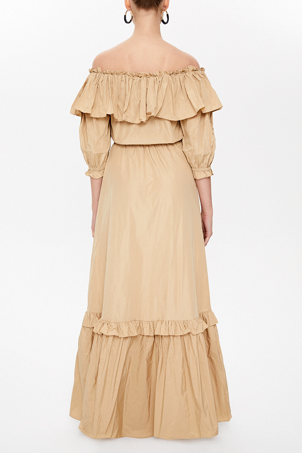 Vizon Düşük omuzlu fırfırlı uzun elbise 93073
