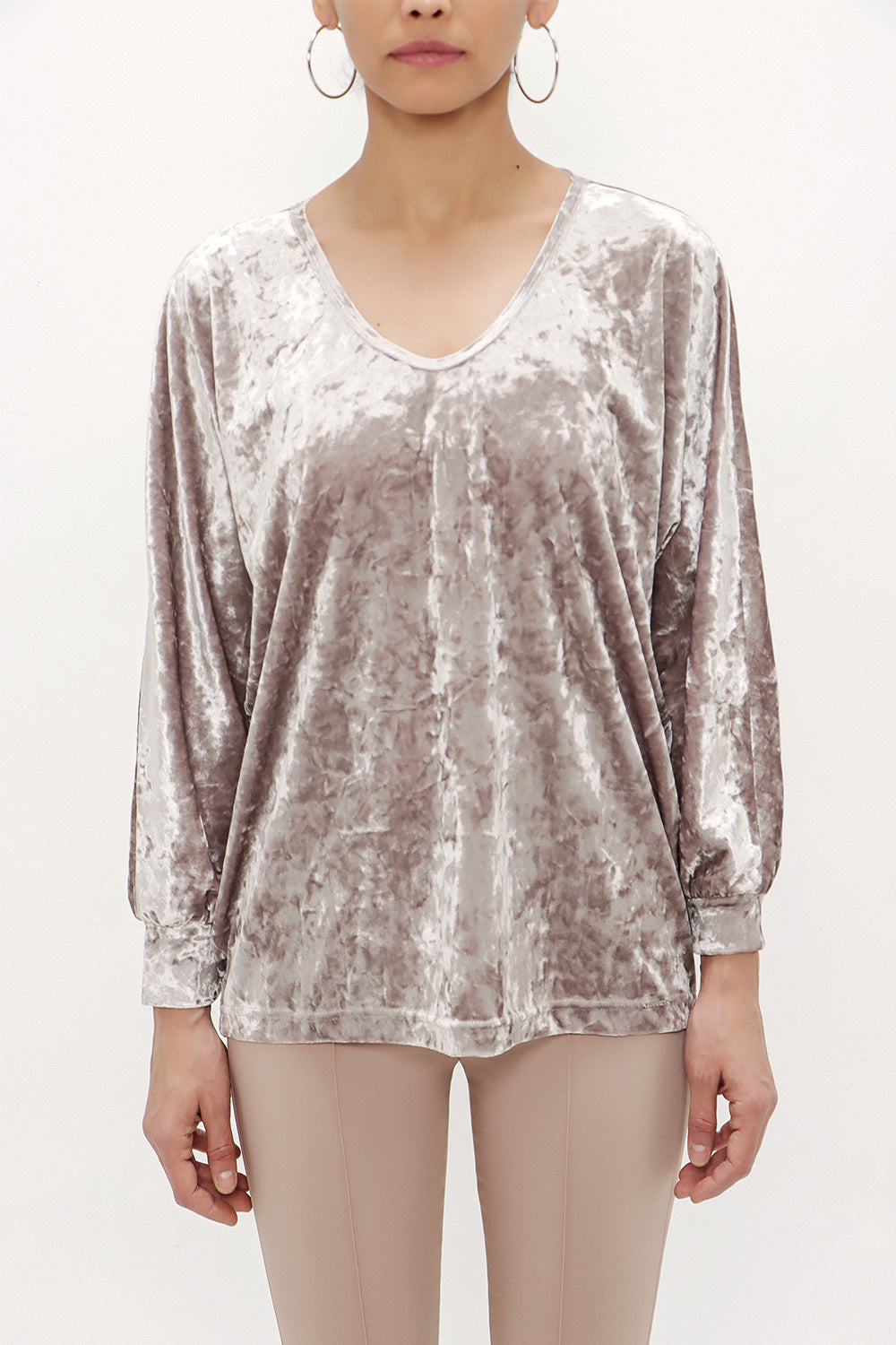 Vizon V yaka kadife bluz 19654