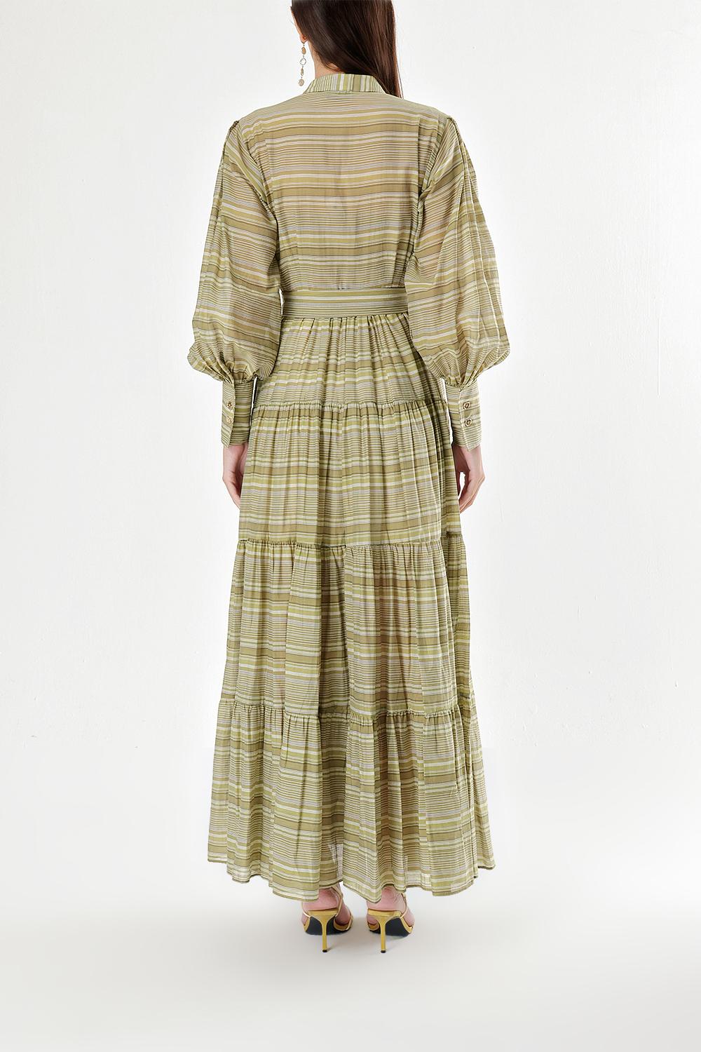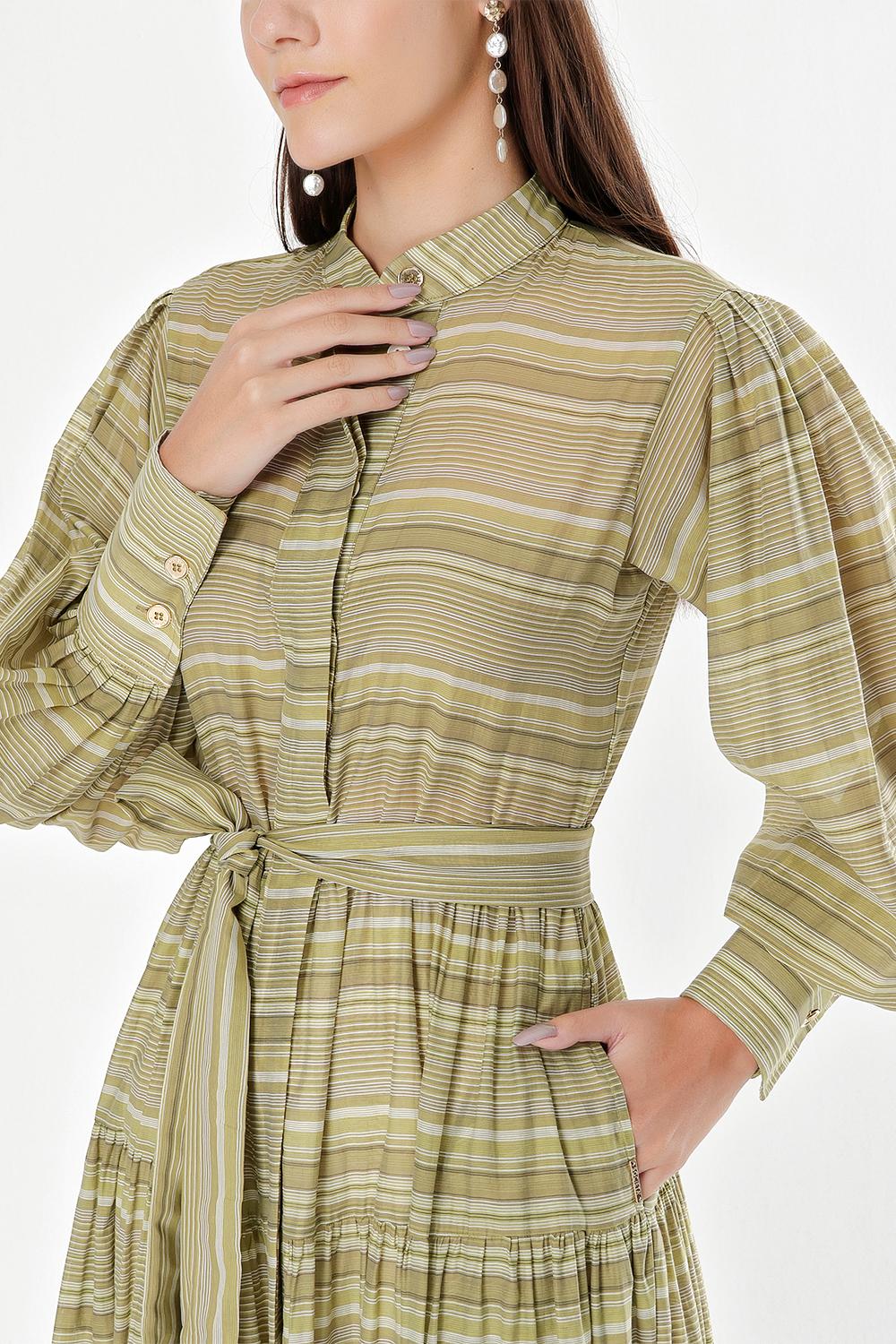 Yeşil Balon kollu büzgülü gömlek elbise 94301