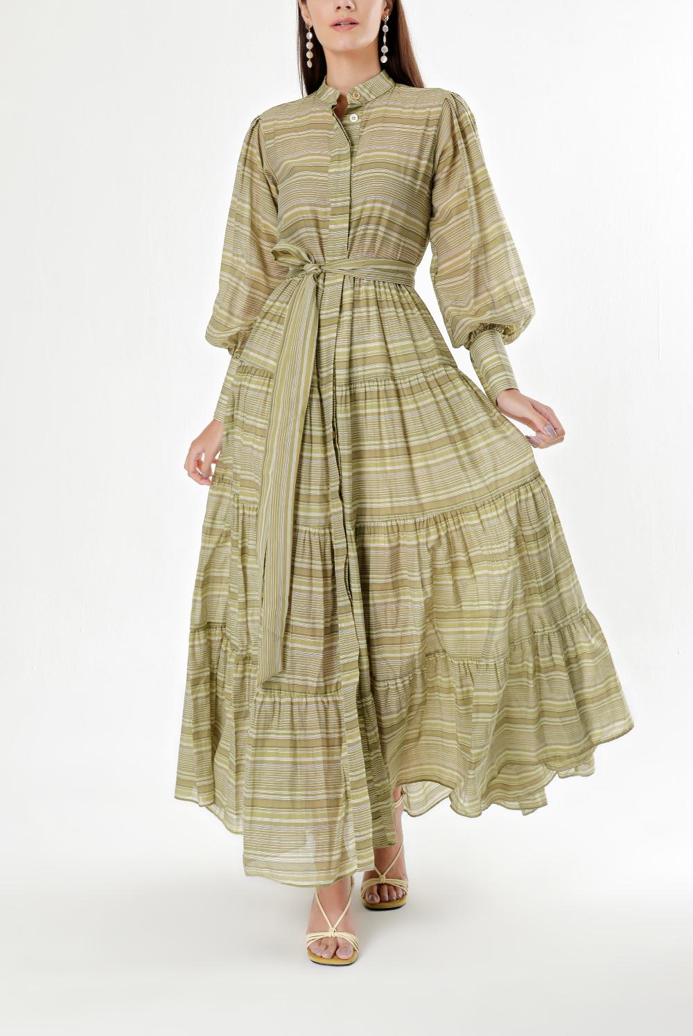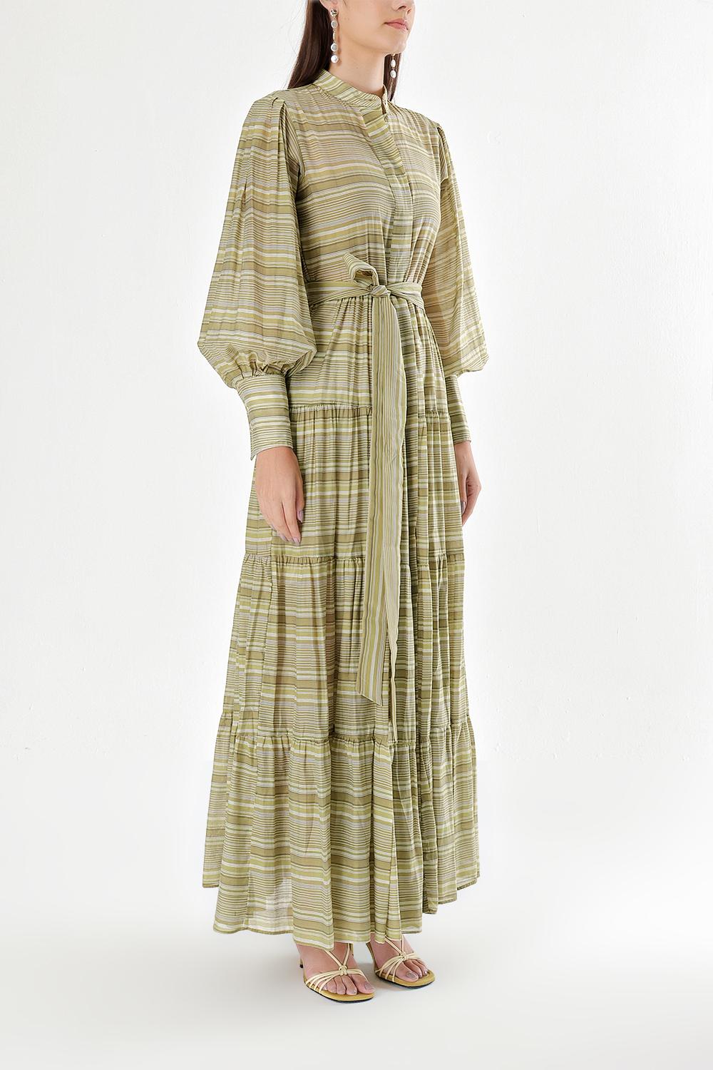 Yeşil Balon kollu büzgülü gömlek elbise 94301