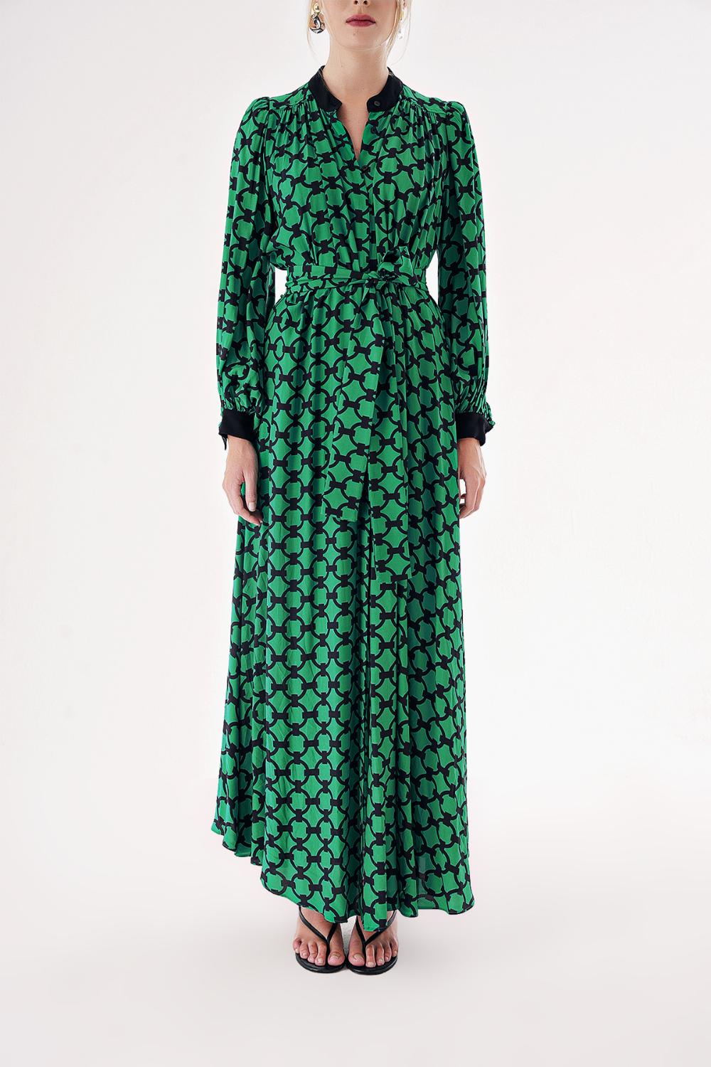 Yeşil Desenli bol kesim gömlek elbise 94527