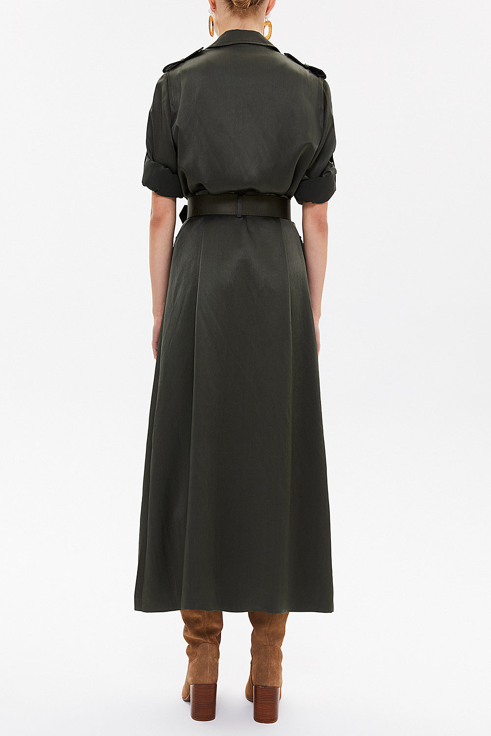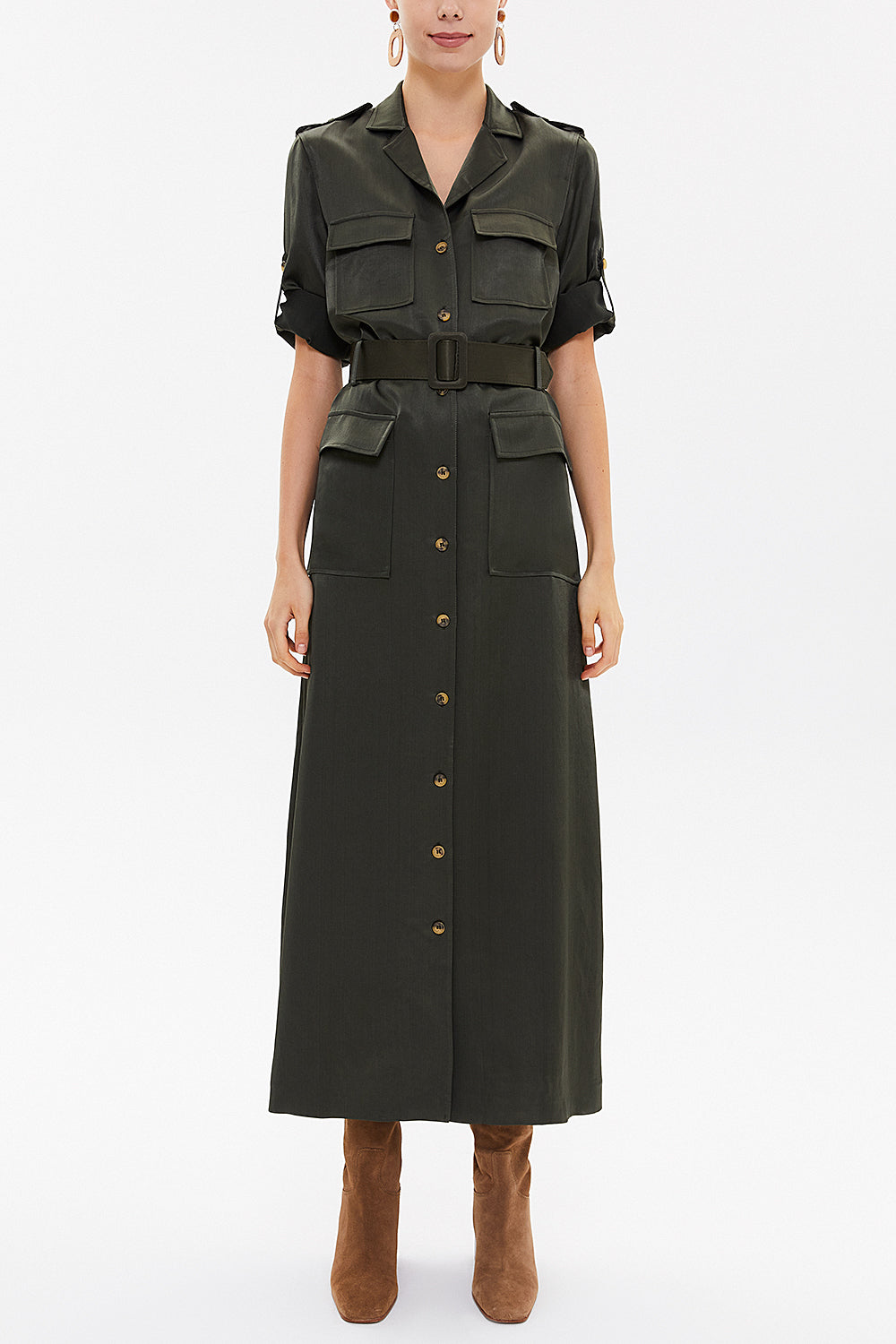 Yeşil Kelebek yaka cepli midi elbise 93289