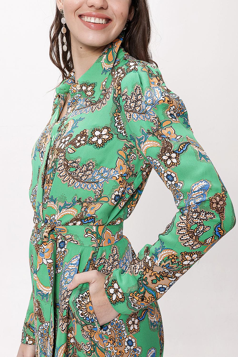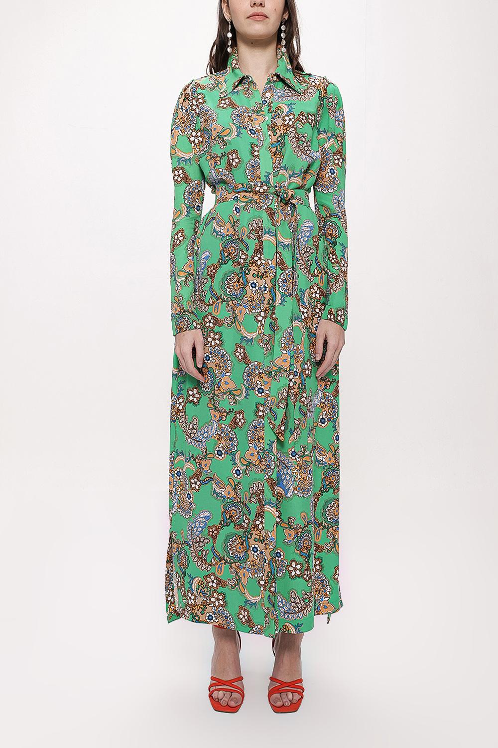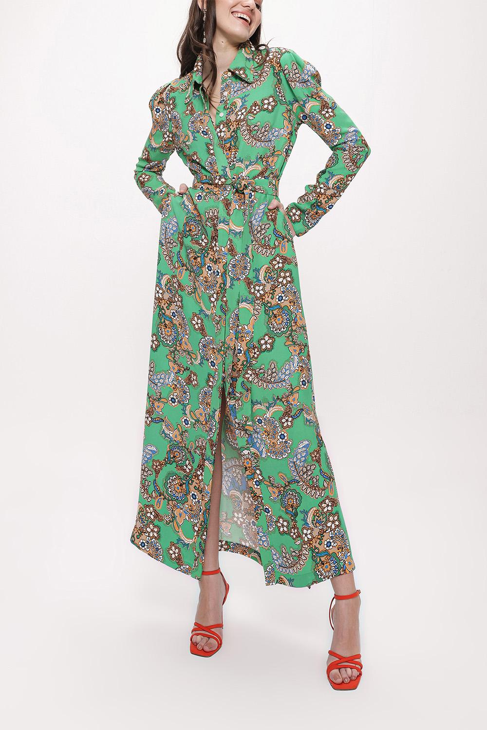 Yeşil Kolları büzgülü gömlek elbise 94170