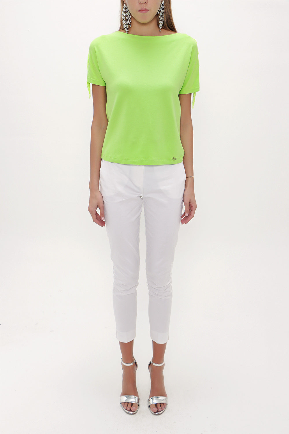 Yeşil Omuzları püsküllü örme bluz 19324