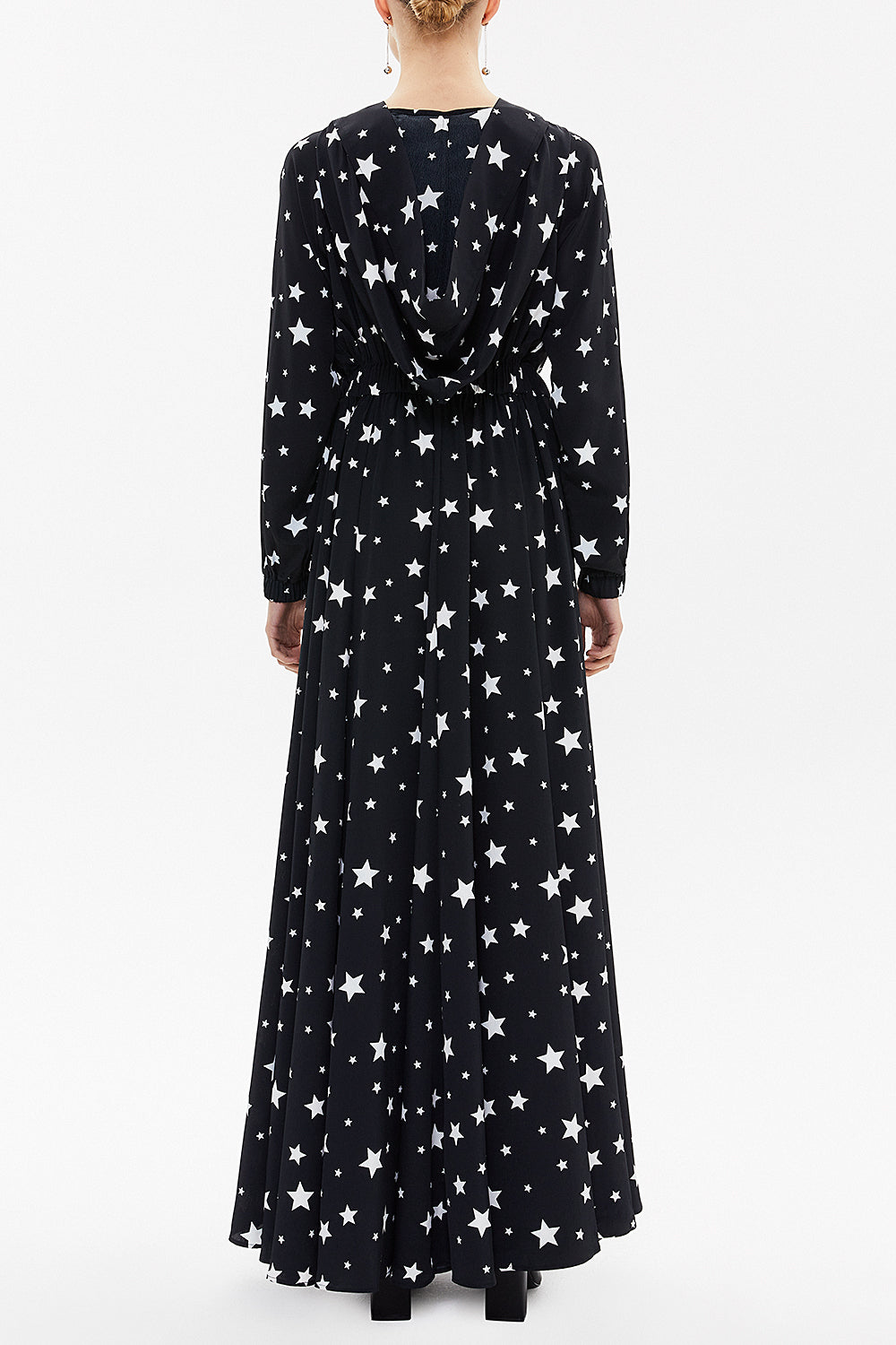 Yıldız desen Fermuarlı kapüşonlu uzun elbise 93209